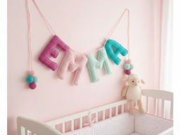 Creo guirnaldas en crochet hechas a mano, personalizadas con el nombre de cada niño. Cada letra está tejida con cuidado, pensando en los detalles y en convertirla en un recuerdo especial que acompañe su infancia.